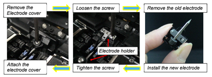 Instructivo sobre cómo realizar un cambio de electrodos aplicable a cualquier marca de fusionadora de fibra óptica, ya que el proceso es similar en todas (Fujikura, Sumitomo, Inno, Signalfire entre otras).